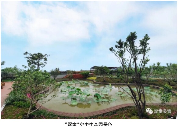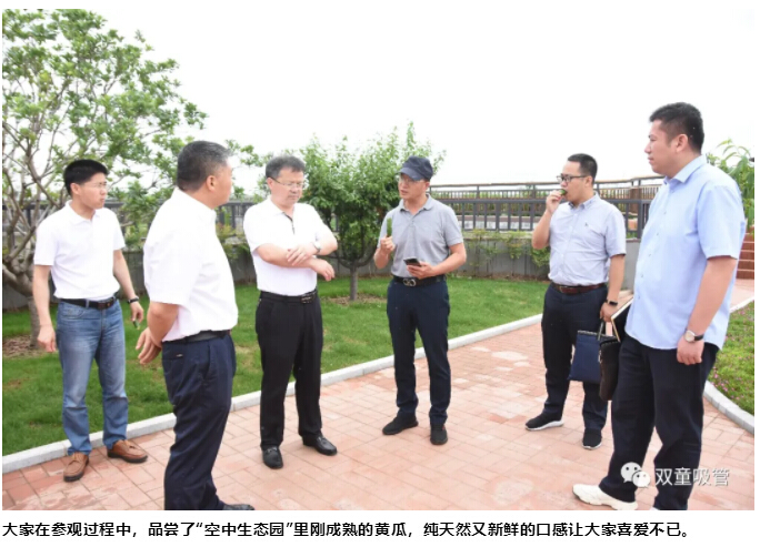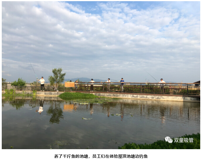 最后,樓仲平陪同李中文社長一行來到“雙童”新廠房的“空中生態(tài)園”,樓仲平介紹道:“這里栽種了200多棵果樹,還有各種蔬菜基地、藕塘、百花苑、還有養(yǎng)了千斤魚的池塘、標(biāo)準(zhǔn)的籃球場......
