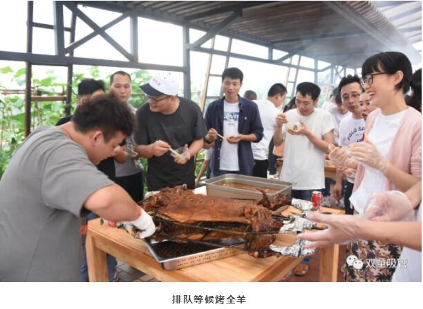 接下來,就是烤全羊的“瓜分”現(xiàn)場!烤全羊剛下烤架,周邊就擠滿了排隊(duì)等候的吃貨們,果真是誰也無法抵擋烤全羊的魅力啊!