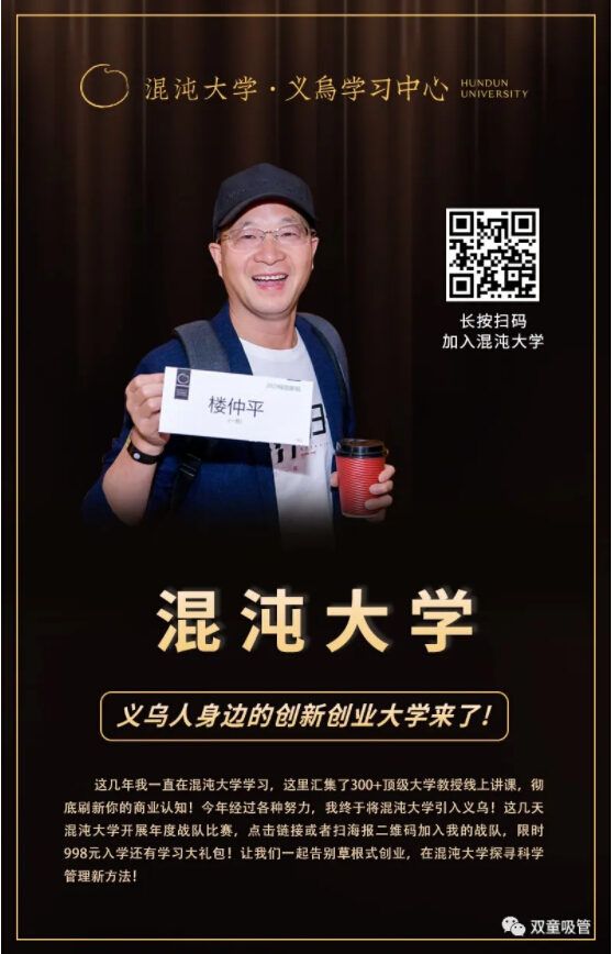 快來和@樓仲平?當(dāng)同學(xué)吧!義烏創(chuàng)業(yè)者都要上一次的“混沌大學(xué)”落戶義烏啦!