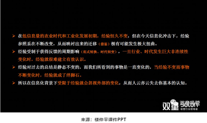 如果你在信息化社會(huì)還一直局限在以往的經(jīng)驗(yàn)里面,就會(huì)忽視外部世界的變化,人云亦云,失去基本的認(rèn)知,從而錯(cuò)失了已經(jīng)發(fā)生的機(jī)會(huì)。