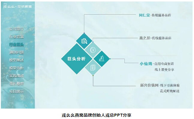 戎么么燕窩品牌通過與燕窩巨頭進(jìn)行多維度分析,找到了自身的新興價值網(wǎng),并運用“顛覆式創(chuàng)新”,通過社群裂變,線下體驗進(jìn)行引流,不僅打開了即食燕窩和花式燕窩甜品的新市場,同時包月配送的新形勢,也滿足了大眾需求,從而開辟出了一條差異化錯位競爭的創(chuàng)業(yè)之路。