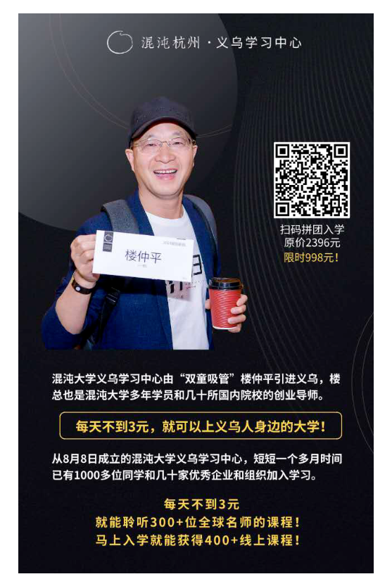 混大義烏成立以來(lái)的短短數(shù)月,我們已經(jīng)舉辦過(guò)多次500人大課及線下學(xué)習(xí)沙龍,并承諾每月線下至少舉辦2次以上的學(xué)習(xí)活動(dòng),來(lái)拓寬同學(xué)們的認(rèn)知視野,幫助同學(xué)們學(xué)以致用。