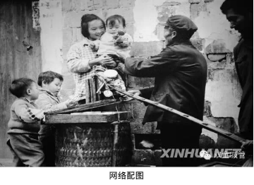 “雞毛換糖”的季節(jié)通常都在每年春節(jié)前后的一個月,這也是我們幾個小兒最害怕的時候,父親通常會在臘月初就出去了,而這個時候也是農村最青黃不接的時候,到五六歲的時候我們一家已經有九口之人,生產隊工分僅靠父母兩個去賺,由于吃的人多,賺的人少,每年反正都會缺糧(當時我們屬于缺糧戶,要交一定數量的錢后才能根據戶口配置糧食供應),交給生產隊的缺糧款全靠“雞毛換糖”解決。