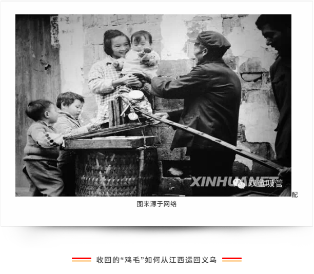 從1979年開始,我跟隨著爸爸在江西弋陽開始挑貨郎擔,每個春節(jié)能換回來幾千斤的“雞毛”我們會把換回來的“雞毛”暫存在老表家里結(jié)束后再用板車拉到火車站托運回義烏。