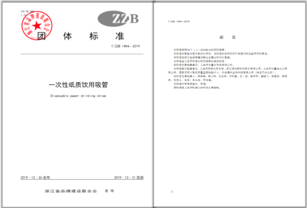 《一次性紙質(zhì)飲用吸管》浙江制造團(tuán)體標(biāo)準(zhǔn)