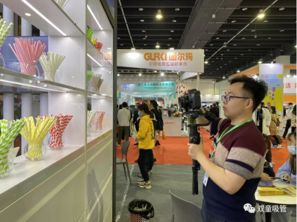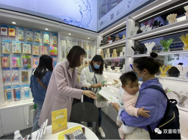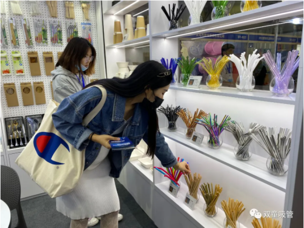 “雙童”展位上琳瑯滿目的吸管
