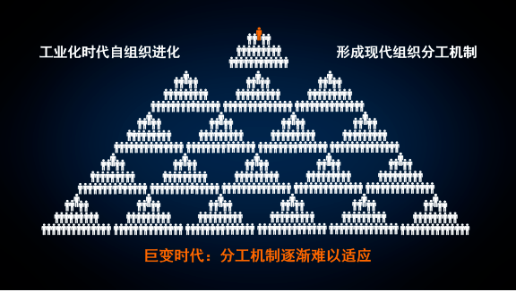 包括樓老師在內(nèi)的雙童核心管理層后來意識到從2016年開始,外部環(huán)境的動蕩性持續(xù)加劇,數(shù)字化信息時代的到來和新生代員工所帶來的種種“新挑戰(zhàn)”,讓雙童意識到延續(xù)“過去的邏輯”已然失效,僅靠專注和堅持已難以突破巨變時代的持續(xù)挑戰(zhàn),原本垂直層級管控(權(quán)威型)的傳統(tǒng)組織方式已不足以激發(fā)核心員工和知識型員工的工作活力、自主提升和價值創(chuàng)造。從而堅定推動變革、打破經(jīng)營慣性,逐漸促使了雙童進行了“結(jié)構(gòu)性的組織創(chuàng)新”。