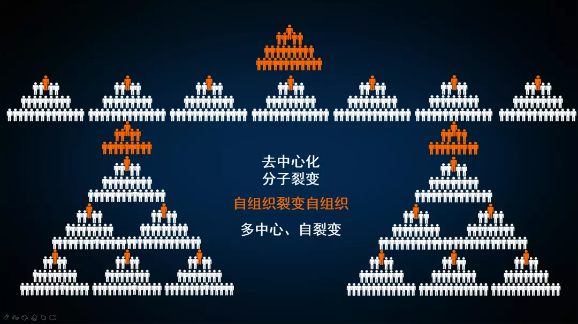 一句話總結(jié)就是把大的企業(yè)做小,做成層級簡單、編制靈活的“自組織”結(jié)構(gòu)創(chuàng)業(yè)體來解決企業(yè)的持續(xù)發(fā)展。那么何為“自組織”?