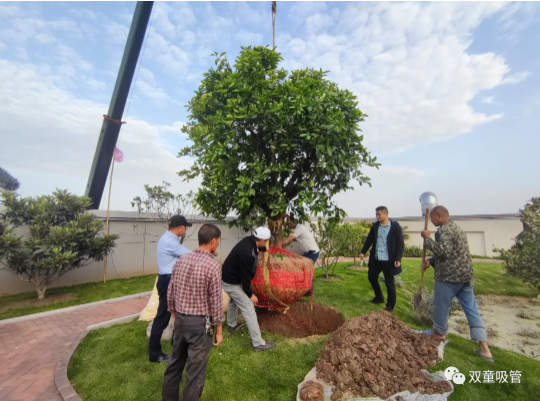 年掛果300斤的胡柚樹被吊上“雙童”二期廠區(qū)樓頂