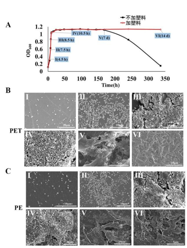 2016年,日本京都工藝纖維大學的小田康平和慶應義塾大學的宮本賢治領導的研究小組發(fā)現(xiàn),一種微生物可以吞食對苯二甲酸酯塑料(PET),這種攝食PET的細菌稱為大阪堺菌。今年一月,《美國化學會·催化》雜志發(fā)表了中國科學院微生物研究所的吳邊團隊進行的研究,對大阪堺菌降解PET塑料所需的酶進行優(yōu)化,獲得了穩(wěn)定性顯著增強的重設計酶,使得大阪堺菌對PET薄膜的降解效率提升了300倍。