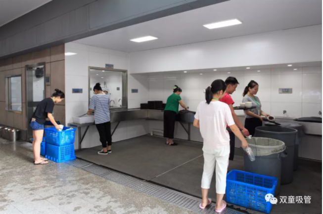 在“雙童”600余人就餐的員工餐廳里,濕垃圾也是“雙童”垃圾分類經(jīng)的一大重點(diǎn)!“五個(gè)碗”是雙童員工的餐具標(biāo)配,在每張餐桌上都擺放著用餐規(guī)范的標(biāo)語提示牌。