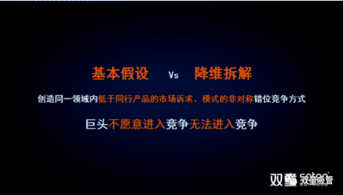 所謂“降維拆解”并非降低產(chǎn)品的技術(shù),更非粗制濫造,而是發(fā)掘底層消費群體更為廣泛的大眾需求,從而實現(xiàn)市場占有的快速提升,本質(zhì)上就是錯位競爭,在看似一片紅海中尋找到自己的產(chǎn)業(yè)生態(tài)位。 實際上,錯位競爭的本質(zhì)就是尋找到非對稱創(chuàng)造商業(yè)機會。而所謂錯位,是需要我們在經(jīng)營上撇開大家都能看到的機會,繞開我們習慣依賴的經(jīng)驗主義,避開多數(shù)人在走的尋常路,從而另辟蹊徑,去創(chuàng)造同一領域內(nèi)高于同行產(chǎn)品的技術(shù)、需求、模式的非對稱創(chuàng)新競爭方式。