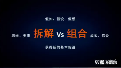 我們在反問的時候,其實你的思維已經(jīng)在抽象的拆解,通過你的思維轉(zhuǎn)換去獲得無限多的可能,這就是"要素拆解"。那么通過拆解去獲得各種眼睛無法看到的可能,從而再用你的思維去選擇和組合拆解后的要素,獲得全新的可能,這就是創(chuàng)新,這種創(chuàng)新叫“組合創(chuàng)新”。