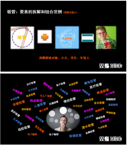 下面再次以“雙童”的吸管為案例,來進行要素的拆解和組合: