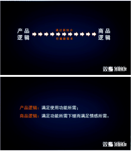 簡單來說,產(chǎn)品邏輯是要素的“疊加之和”,是1+1=2,是成本疊加再加上合理利潤的預期值。所以,透明、對稱,你與競爭對手之間是完全的正面競爭。而商品邏輯是非對稱的,它隱含的競爭要素更多體現(xiàn)在人文性和精神性上,如品牌、渠道、技術(shù)和體驗服務上,從而讓競爭對手無法復制,由此產(chǎn)生非對稱競爭,以實現(xiàn)更大的價值創(chuàng)造。