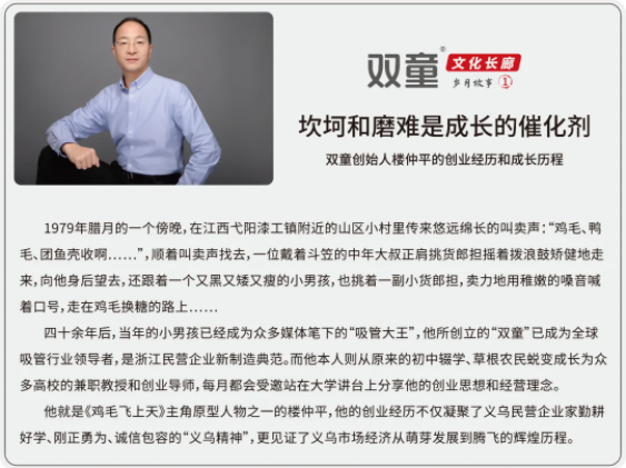 近期,由樓仲平領(lǐng)銜、文宣團(tuán)隊(duì)策劃推動(dòng)的“雙童”百米文化長(zhǎng)廊正在逐步上墻,第一篇章主要講述了樓仲平的個(gè)人創(chuàng)業(yè)經(jīng)歷,同時(shí)結(jié)合了義烏城市發(fā)展的背景,情節(jié)跌宕起伏,妙趣橫生。