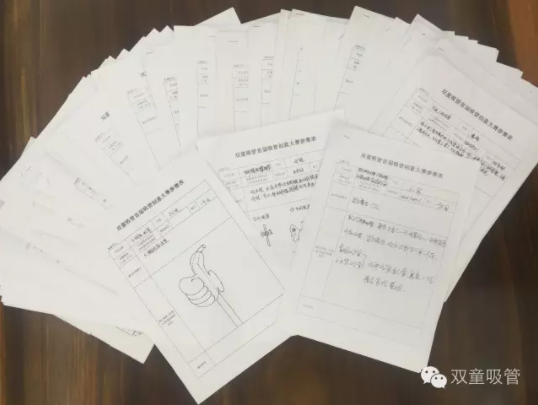 “雙童”的愛心吸管“僅這一個小小的水流止回閥,我們就擁有4項自主知識產(chǎn)權(quán),有效解決了液體回流問題,還避免交叉感染?!睒侵倨礁嬖V記者,因為吸管生產(chǎn)是很偏很窄的行業(yè),要想產(chǎn)品有創(chuàng)新、有市場,“雙童”只能靠自己研發(fā),除了產(chǎn)品的外觀、功能外,就連生產(chǎn)設(shè)備也要自己研制,他的很多創(chuàng)新都是“困而知之”的產(chǎn)物。為了鼓勵員工參與創(chuàng)新,樓仲平每年都會舉辦產(chǎn)品創(chuàng)新大賽,讓員工們的創(chuàng)新潛力得到最大程度的激發(fā)?,F(xiàn)在熱銷的不少新款吸管產(chǎn)品,就來自創(chuàng)新大賽的獲獎作品。2015年,“雙童”的新產(chǎn)品占比超過56%。 員工設(shè)計的93份吸管產(chǎn)品圖紙 追求創(chuàng)新,讓一根毫不起眼的吸管從低小散弱變成了高大上,而企業(yè)也在工業(yè)用地、廠房、設(shè)備保持不變的情況下,實現(xiàn)了資源產(chǎn)出的最大化。10年里,“雙童”產(chǎn)值始終保持著每年兩位數(shù)增長,產(chǎn)值增長了6倍,人均產(chǎn)出增長了8倍。 “雙童”全封閉無塵紙吸管車間