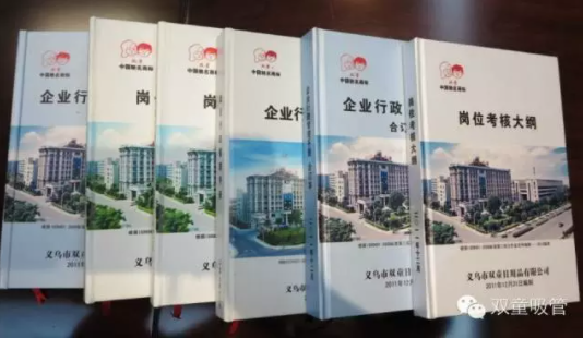 精細(xì)化管理也滲透在雙童的各個環(huán)節(jié)。樓仲平格外注重企業(yè)文化對員工素養(yǎng)的提升。在“雙童”,每周雷打不動都有兩期全員學(xué)習(xí)大會;各部門還有自己的小課,即使是保潔阿姨、門衛(wèi),每周都要求學(xué)滿10小時。此外,雙童還擁有完整的制度流程,已經(jīng)積累形成了2000多頁標(biāo)準(zhǔn)化制度文件,其中管理衛(wèi)生的文件就涉及260多頁。 已經(jīng)成冊的各種管理制度和手冊 正是這種嚴(yán)謹(jǐn)、認(rèn)真的“工匠”態(tài)度,“雙童”先后承擔(dān)了《聚乳酸冷飲吸管》中國輕工業(yè)標(biāo)準(zhǔn)、《聚丙烯飲用吸管》中國國家標(biāo)準(zhǔn)和《聚丙烯飲用吸管規(guī)范》ISO國際標(biāo)準(zhǔn)的起草編制,把規(guī)則制定和國際話語權(quán)牢牢掌握在自己手中,成為了浙江省唯一一家單一企業(yè)承擔(dān)“行業(yè)標(biāo)準(zhǔn)、國家標(biāo)準(zhǔn)和ISO國際標(biāo)準(zhǔn)”的中小企業(yè),也成為第一個使“義烏標(biāo)準(zhǔn)”走上國際舞臺的企業(yè)。