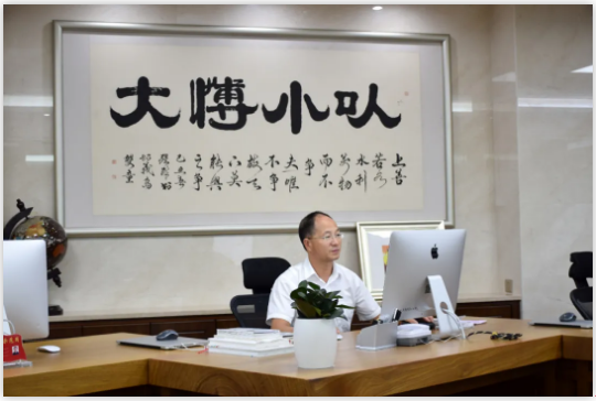 樓仲平的辦公室里掛著一幅書法作品,“以小博大”四個大字的下面,還添了幾列小字上善若水,水善利萬物而不爭。夫唯不爭,故天下莫能與之爭。