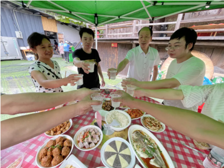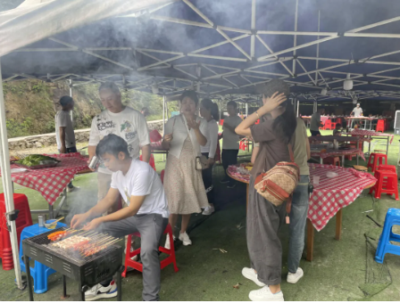 玩了一上午也累了,是時(shí)候飽餐一頓了!豐盛的農(nóng)家菜,加上香氣誘人的燒烤,讓人垂涎欲滴。吃飽了,才有力氣去迎接下午更有趣的游戲噢!