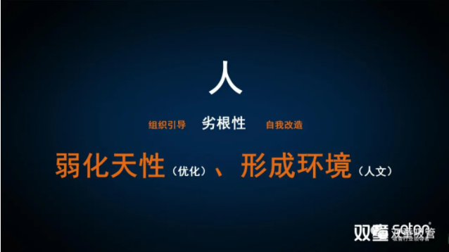也就是說,無論是經(jīng)理人也好,還是普通的員工也好,本質(zhì)上管理者要去理解在組織當(dāng)中的這種由人性本能所決定的規(guī)律, 進(jìn)而通過引導(dǎo)影響成員完成改造。