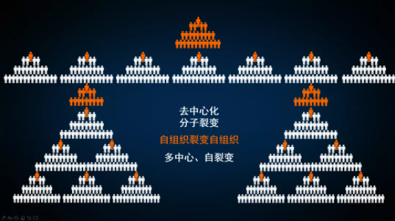 一句話總結(jié)就是把大的企業(yè)做小,做成層級(jí)簡(jiǎn)單、編制靈活的“自組織”結(jié)構(gòu)創(chuàng)業(yè)體來解決企業(yè)的持續(xù)發(fā)展。那么何為“自組織”?