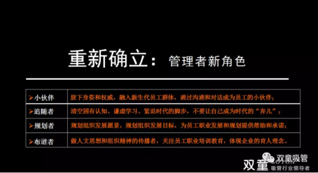 最后樓老師針對(duì)上述組織變革提出了管理者角色的重新定位,他認(rèn)為傳統(tǒng)經(jīng)營(yíng)者和管理者如果還在堅(jiān)持沿用以前的老經(jīng)驗(yàn)、老方式,那就離淘汰不遠(yuǎn)了!樓老師也再次提醒大家,面對(duì)不同的價(jià)值個(gè)體,管理者首先需要改變的就是自己:
