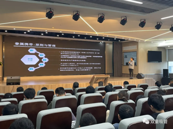 大會(huì)伊始,“雙童”后勤科長馬夢麗為大家分享了餐廳秩序、廠區(qū)衛(wèi)生和寢室管理細(xì)則,讓大家知曉在“雙童”的衛(wèi)生注意事項(xiàng),引導(dǎo)員工們共同維護(hù)“雙童”的美好環(huán)境!