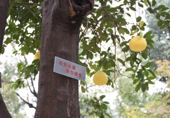 柚子樹(shù)上溫馨的標(biāo)語(yǔ)提示,