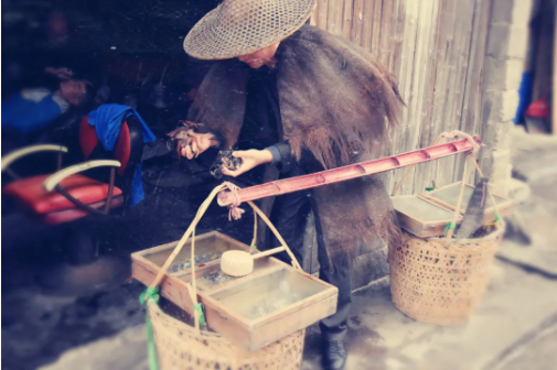 挑“貨郎擔(dān)”用的扁擔(dān)和一般的扁擔(dān)是不一樣的,杉木扁擔(dān)很軟,挑的過程當(dāng)中會(huì)很有節(jié)奏的搖起來。