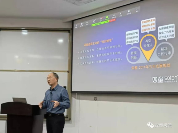 同時(shí),樓仲平將學(xué)習(xí)到的理念知識(shí)應(yīng)用到“雙童”的經(jīng)營(yíng)實(shí)踐中,并形成了自己的一套經(jīng)營(yíng)課件,更是成為了十多所大專院校的客座教授和兼職教授,幾乎每周都會(huì)受到各大院校邀請(qǐng)分享自身的經(jīng)營(yíng)理念。