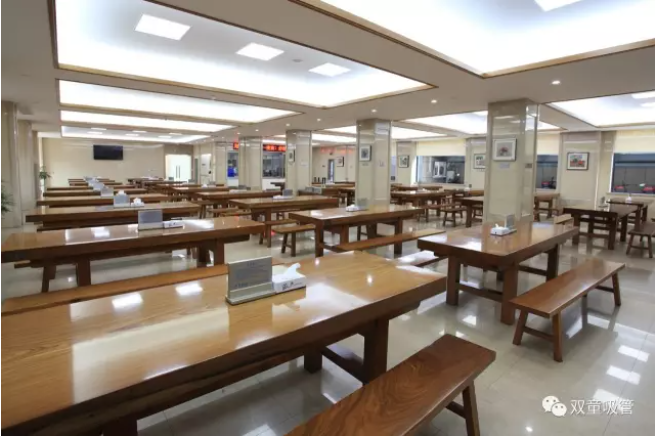 因此,“雙童”的員工餐廳配備了優(yōu)質(zhì)硬件,每一張餐桌重達四五百斤,由“木中之王”的柚木定制而成,這種餐桌再過50年還會越來越值錢。