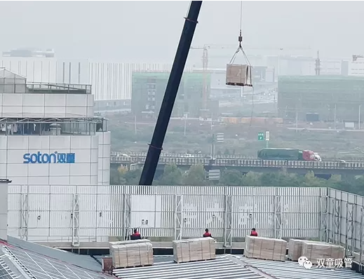 光伏板被吊機(jī)一塊塊吊到樓頂