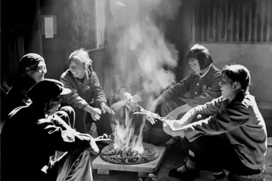 吃完晚飯有的時(shí)候會(huì)烤火,“雞毛換糖”很多時(shí)候會(huì)遇到下雨下雪天,山區(qū)路也不好,鞋和衣褲一般都會(huì)濕透,所以當(dāng)天的衣服必須換下來清洗一下,然后在烤火的邊上搭一個(gè)三腳架烤衣服。我們也會(huì)在烤火的邊上和老表一起嘮嘮家常,或者聽我爸爸講講故事。