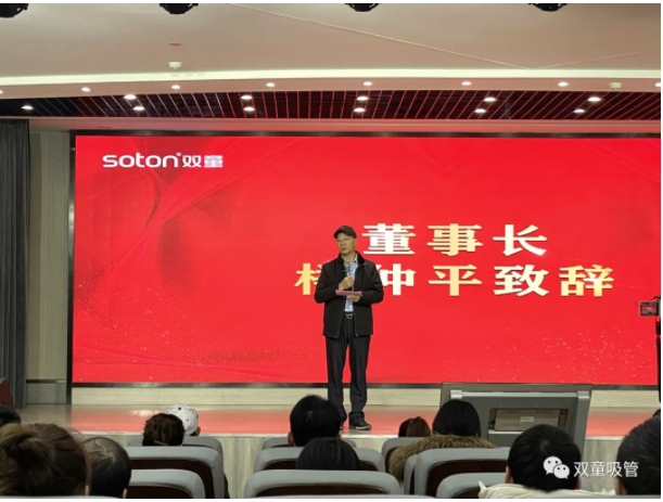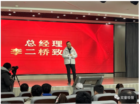 大會(huì)上,“雙童”董事長樓仲平和“雙童”總經(jīng)理李二橋,向在場每一位辛勤奮斗的員工們表示了感謝,并提出了“雙童”后續(xù)的工作規(guī)劃,為員工爭取了更多權(quán)益與巨額獎(jiǎng)勵(lì),給予了在場員工巨大的想象空間。
