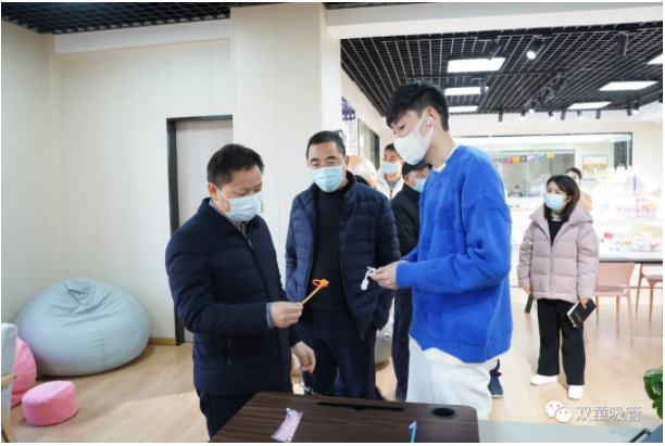 邵國(guó)強(qiáng)副市長(zhǎng)對(duì)“雙童”吸管的創(chuàng)新表示贊嘆