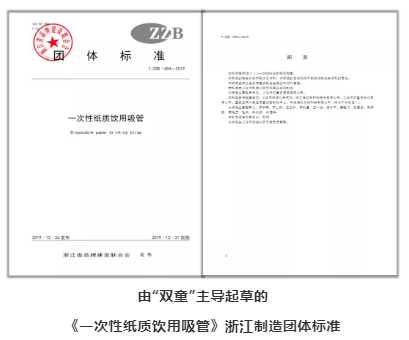 在此過程中,樓仲平帶領(lǐng)“雙童”緊隨市場發(fā)展的步伐,相繼在2014-2016年期間主導(dǎo)起草制定了《聚乳酸冷飲吸管》中國行業(yè)標(biāo)準(zhǔn)和浙江團(tuán)體標(biāo)準(zhǔn),在2019年又主導(dǎo)起草編制了《一次性紙質(zhì)飲用吸管》浙江團(tuán)體標(biāo)準(zhǔn)。