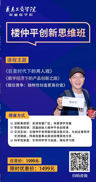 @義烏創(chuàng)業(yè)者 【樓仲平創(chuàng)新思維班】每月火熱開班!相約雙童商學(xué)院,不見不散!