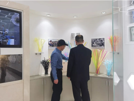 在“雙童”董事長樓仲平的陪同下,許惠春副院長一行來到了中國吸管博物館,一起參觀了吸管產品發(fā)展歷史展示區(qū)、吸管生產技術展示區(qū)、吸管產品形態(tài)展示區(qū)等各類吸管的展示區(qū)域,同時,調研組也了解了“雙童”的技術研發(fā)創(chuàng)新和代表性專利。