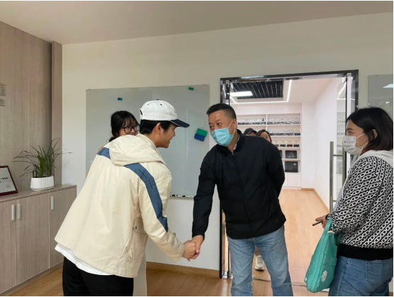 樊部長(zhǎng)走訪企業(yè)畢業(yè)生(右一)