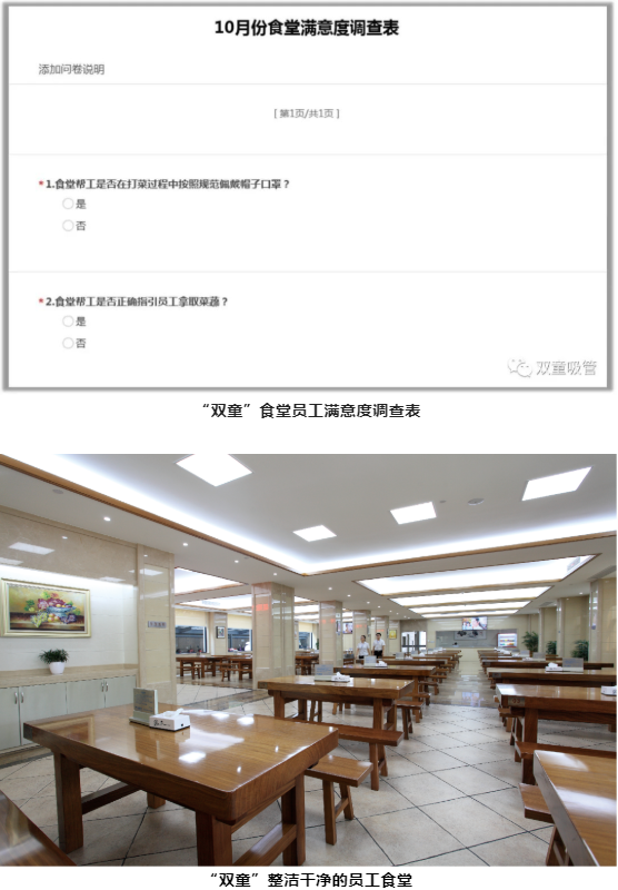 “雙童”每月會進行2次員工滿意度調(diào)查,抽取60名員工對食堂工作進行評價,調(diào)查結(jié)果將直接影響后勤餐飲團隊的績效考核。這也讓“雙童”后勤餐飲團隊進一步重視員工的需求,服務(wù)是否到位,及時調(diào)整飯菜風(fēng)味和菜品等。
