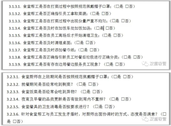 員工滿意度調(diào)查工作促使后勤餐飲團隊在日常工作中進行自我監(jiān)督,賦予了員工對飲食的選擇權(quán)和提議權(quán),同時設(shè)立強硬的規(guī)則進行維護和保障,充分說明了“雙童”人性化的背后也是機制!