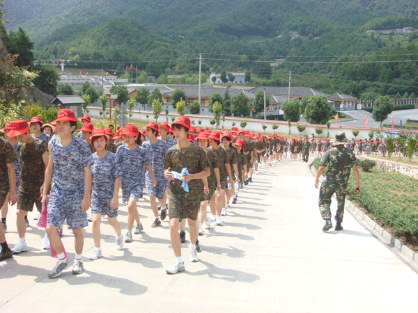 上圖:公司職工頂著烈日?qǐng)?jiān)持軍事化整隊(duì)訓(xùn)練