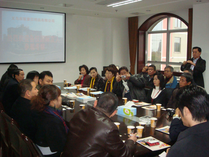 今天上午10:05分,在義烏市對外經(jīng)濟貿(mào)易合作局副局長姚咸明的陪同下,日本沖繩縣考察團一行到我司參觀考察,副總經(jīng)理張國俊、張洪潮出席接待并陪同考察。
