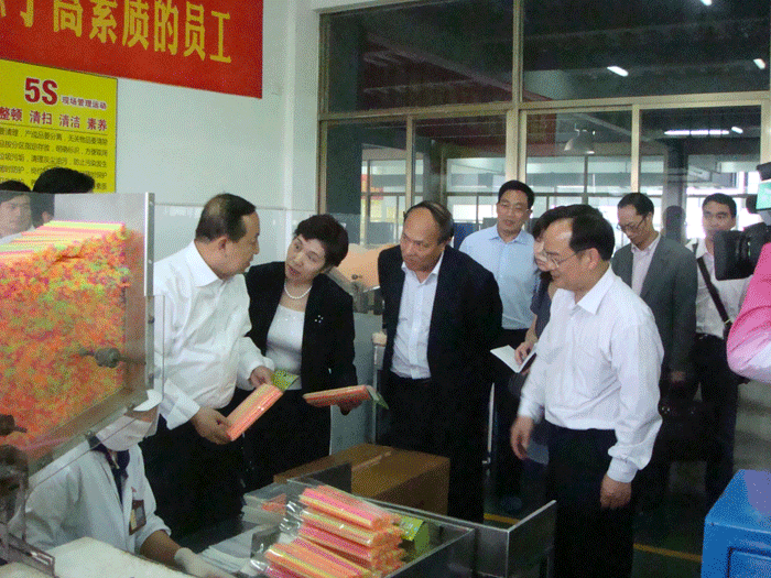 上圖:楊志明副部長(zhǎng)一行在吸管生產(chǎn)車間進(jìn)行調(diào)研