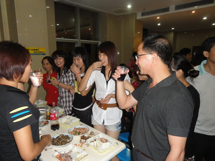 農(nóng)歷8月15日,雖然天氣有點陰沉,卻不影響“雙童”吸管全體職工團圓過節(jié)的好心情。公司董事長樓仲平和副總經(jīng)理張洪潮在這個節(jié)日里卻忽略了他們那溫馨的小家,放下了手中的所有事情為“雙童”這個大家忙碌了一整天,親自帶領(lǐng)公司各主管人員興致滿滿地從菜市場和超市來了個大采購,然后回到公司風(fēng)風(fēng)火火地為全體職工準(zhǔn)備起了團圓飯。他們的親自參與留給全體職工的不僅是節(jié)日的歡喜和桌上的盛宴,更多留下是感動、感恩,有了家的溫暖。幾百人聚在一起過了個紅紅火火的中秋節(jié)!