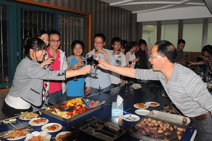 2010年9月23日晚上,“雙童”公司旗下的雙童淘金電子商務有限公司組織了一場別開生面的“淘金百貨·中秋酒會”活動,酒會以自助的露天燒烤為主要組織形式,中間穿插一些競猜互動。酒會場地選定在雙童吸管十樓的空中花園,然后在多功能廳唱歌跳舞,雙童和淘金公司的30多人全部參加,酒會現(xiàn)場還邀請到了義烏電子商務界一些企業(yè)老總和高管。并召集到了一些行業(yè)人士到淘金百貨公司參觀和交流,取得了良好的互動效應。