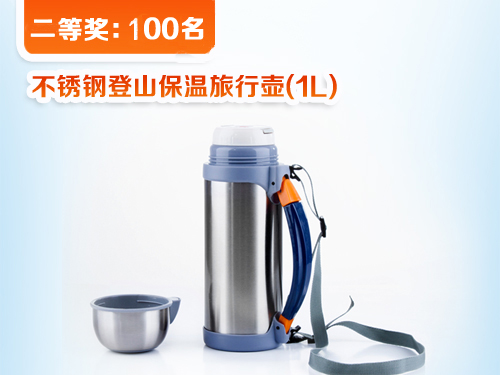 ●→ 網友參與二等獎100名:價值98元的高檔不銹鋼保溫杯。