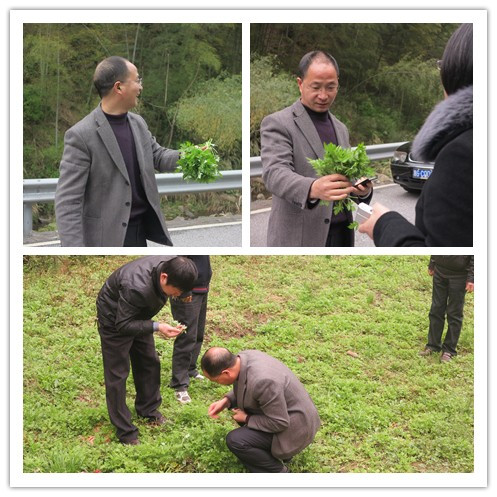 接著,樓總為我們選好了燒烤地點,是在一個小溪沙洲上。正當大家拿著東西準備走下去時,樓總的聲音在不遠處響起:“快點來啊,這里有野菜哎!”大家趕過去一看,可不是,一地綠油油的野艾草,樓總一個人蹲在地上一邊摘野菜一邊興奮地朝我們說:“這個就是做清明果的菜料,非常香的!”樓總這么一說,大家更加心動了,連忙跟著樓總一起摘起了野菜。