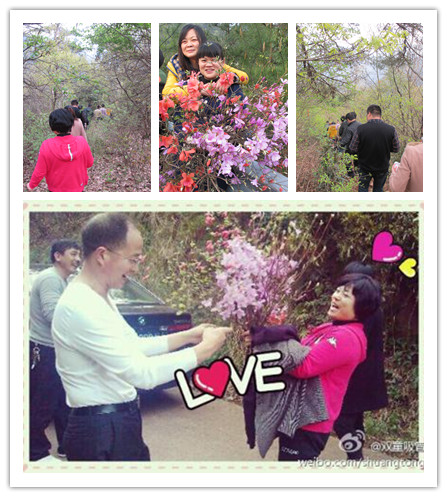 我們兵分兩路進行了爬山比賽,當雙童吸管的第一支登山小分隊已經(jīng)成功抵達目的地時,由當家人樓總帶隊的第二支小分隊還在路上呢!當樓總大汗淋漓地到達終點時,身上只剩下一件白色的薄薄長袖。他到達終點的第一件事就是把路上采來的一大束花送給了他心中最美的美女——樓夫人啦!